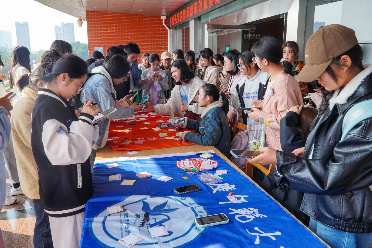 11月5日,图书馆二楼门口掀起一阵阅读分享的热潮。以“这本书,我担保!”为主题的真人图书担保卡活动吸引了近500名学生踊跃参与。同学们纷纷在彩色便利贴上写下自己钟爱的书籍名称,并附上与书相遇的故事和独到见解,让一本本经典在文字间“活”了起来。