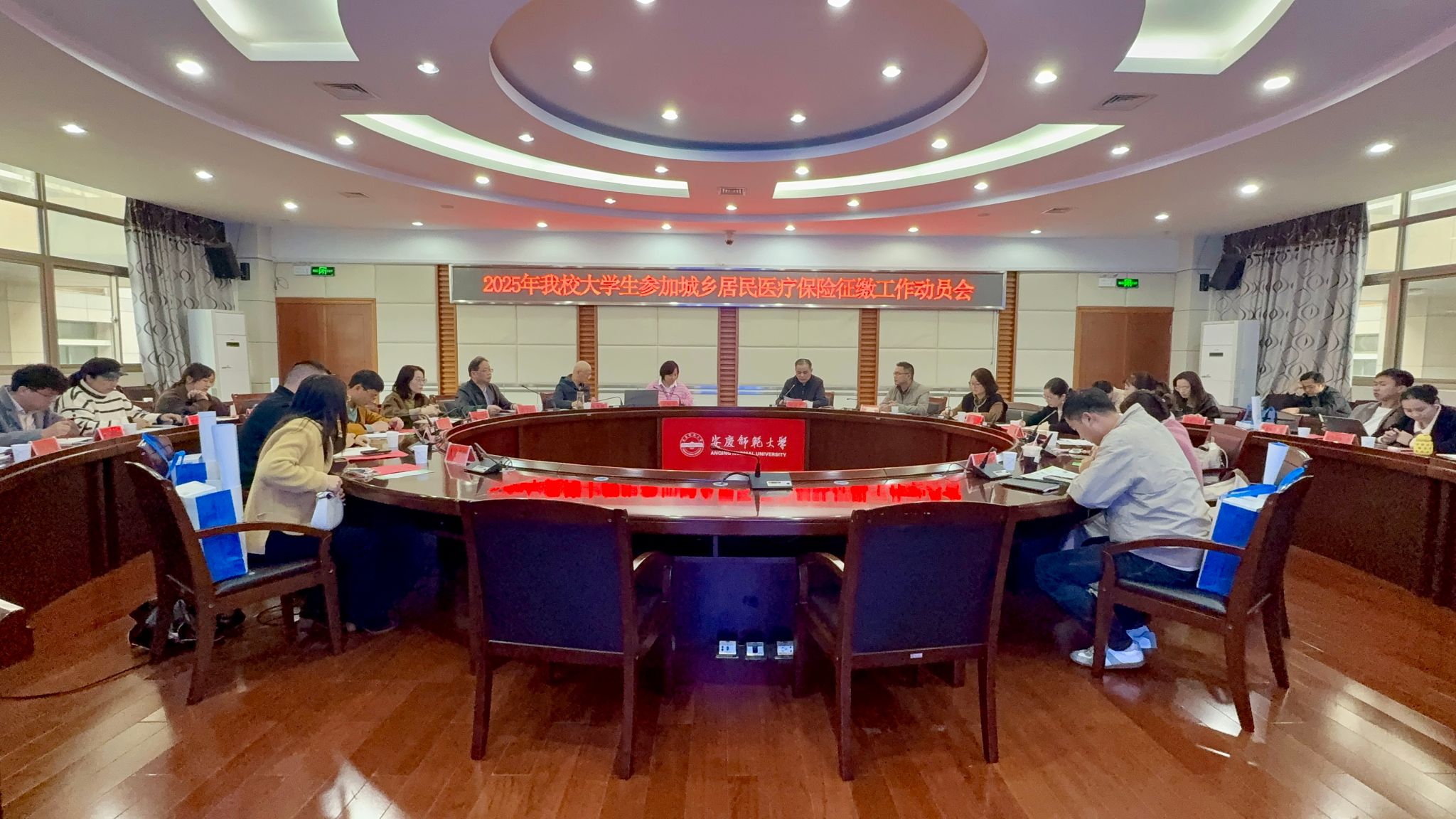 11月6日下午,校医院联合安庆市医疗保障局在行政楼二楼会议室召开2025年度大学生参加城乡居民医疗保险征缴工作动员会。安庆市医疗保障局待遇保障科副科长彭婉君、安庆市医疗服务中心办公室主任吴多双、各学院负责学生医保老师及校医院相关人员参加会议。会议由校医院院长曹必宏主持。