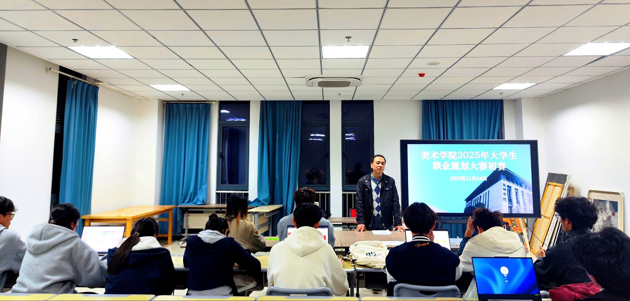 11月14日,美术学院举办2025年大学生职业规划大赛院级初赛。美术学院党委副书记金忠良出席比赛现场,美术学院辅导员、就业秘书和学生会成员担任评委,经各班级推荐,8名同学参加美术学院初赛。