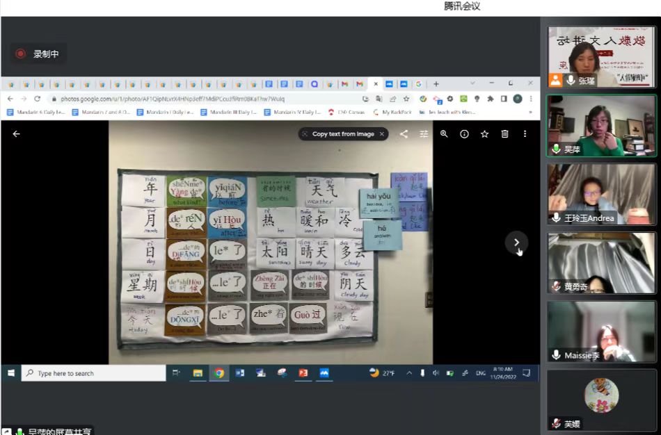 吴萍分享了她在北美多年从事国际中文教育的经验,从设计课堂,选取合适的教学材料,创作有趣、有深度的故事,安排课堂教学活动,进行课堂管理与作业考核以及科技工具的使用等方面介绍了“可理解输入”理论在国际中文教学课程设计和课堂中的实际应用。为了让大家能够更好地感受美国中学中文课堂教学的氛围,吴萍还通过线上视频的方式与beat365师生进行了国际中文教育的课堂模拟。在一个个有趣的小活动中,讲座的气氛被推向高潮。