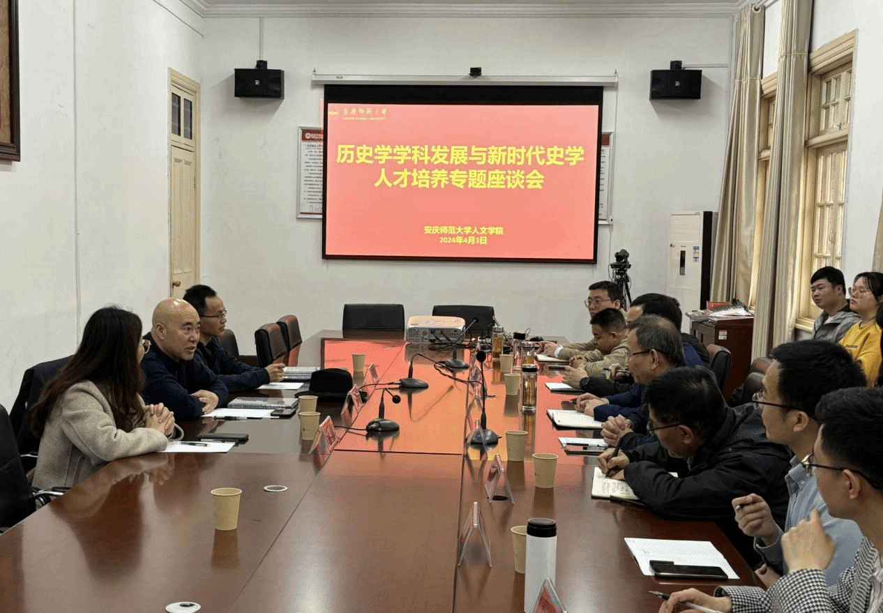 4月3日,人文学院召开“历史学学科发展与新时代史学人才培养”专题座谈会,会议由中国中古史研究中心和人文学院研究生会承办。中国人民大学清史研究所博士生导师、清史编纂工程史表组专家何瑜教授,河南大学历史文化学院博士生导师柳岳武教授应邀到会指导。校档案馆(博物馆)馆长金仁义教授、科研处副处长王惠以及历史学各教研室主任、科研平台负责人、部分青年骨干教师、研究生和本科生代表参加了座谈。会议由人文学院副院长沈志富教授主持。