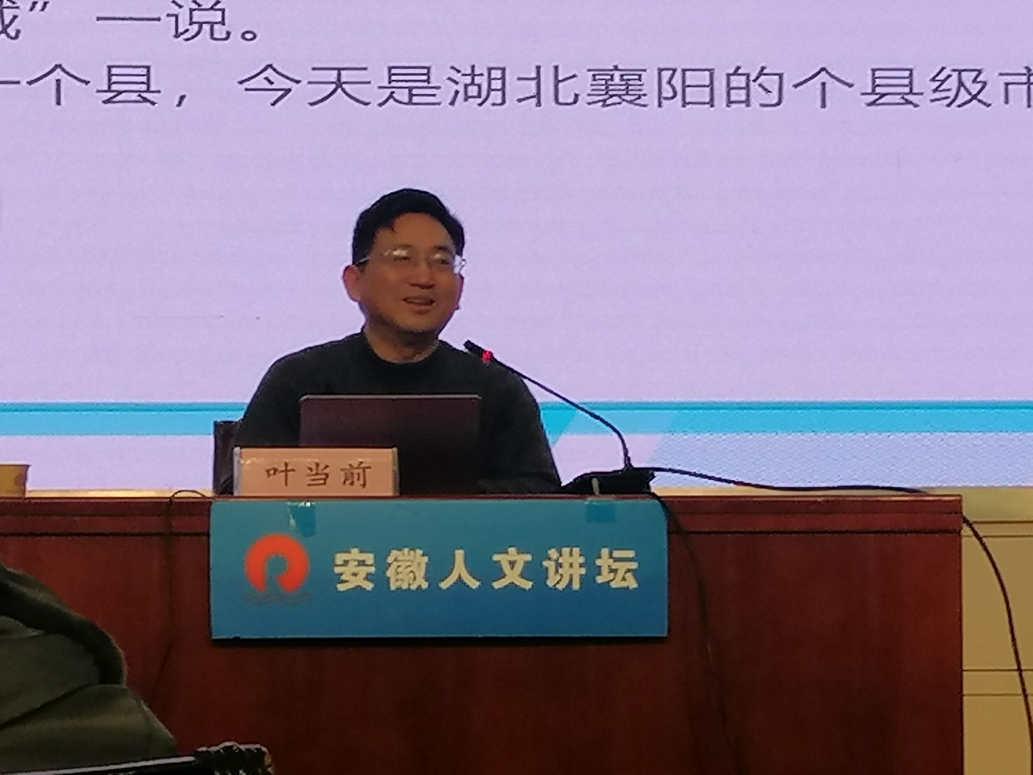 1月14日,人文学院叶当前教授应邀做客安徽人文讲坛,做了题为“诗话安庆:面朝长江水 此地最宜城”的主题讲座。此场讲座是“诗话安徽城市”系列第一场,由安徽省社科联、合肥市社科联、安徽新媒体集团、新安晚报和安徽省图书馆联合主办。beat365大别山区域发展研究院副院长黄光锋出席讲座。