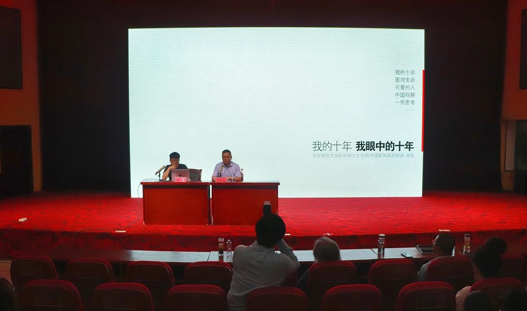 6月10日,嘉兴市新闻传媒中心摄影记者朱骏应邀来校作两场新闻摄影专题讲座,讲座分别由传媒学院副院长段萱、校学科建设处副处长陈东主持,学院部分教师、本科生、研究生等300余人聆听讲座。
