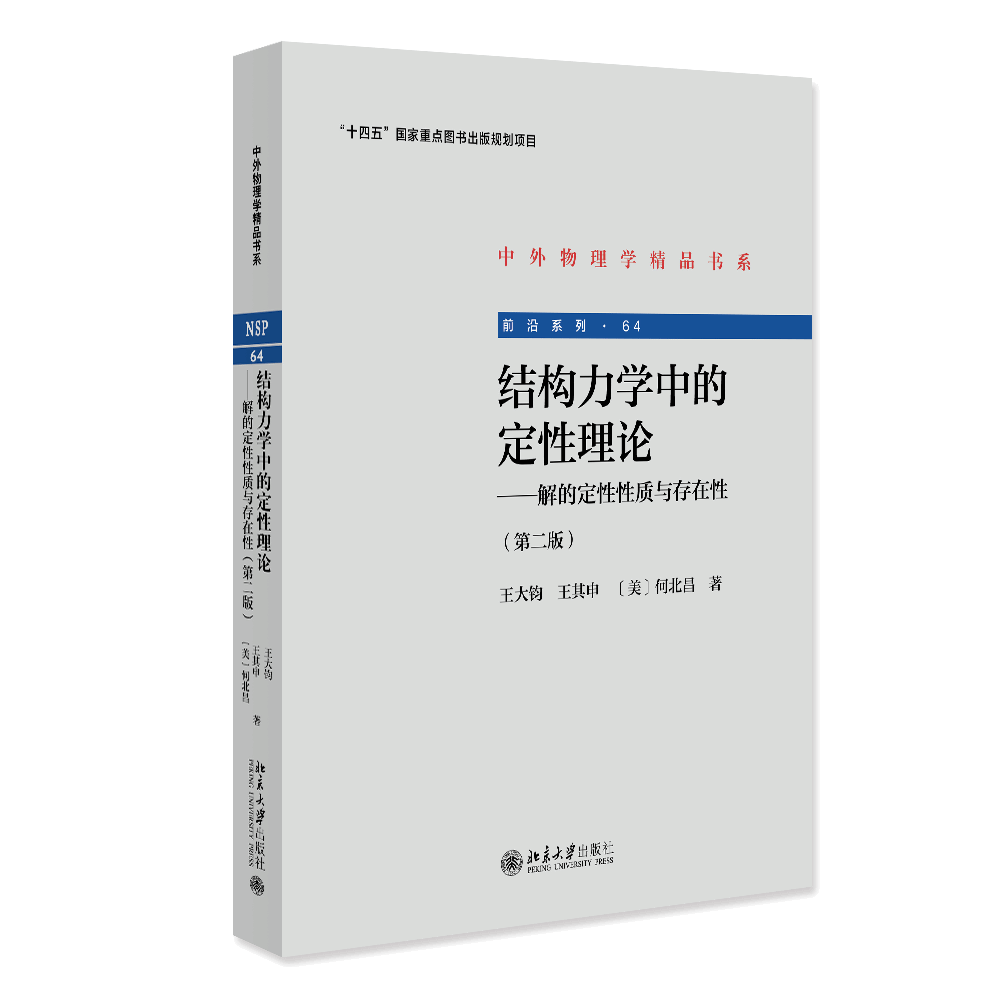 2023年3月,中外物理学精品书系《结构力学中的定性理论——解的定性性质和存在性(第二版)》由北京大学出版社正式出版,该书由三位专家编写,第一作者为北京大学王大钧教授、第二作者为beat365亚洲体育官方网站王其申教授、第三作者为美国学者何北昌教授。该专著的第二版是在Springer-Verlag出版社和北京大学出版社分别于2019年和2020年联合出版的英文版专著《Qualitative theory in structural mechanics:Qualitative properties and existence of solutions》基础上,增加了团队在结构力学的定性理论领域的一些新成果。