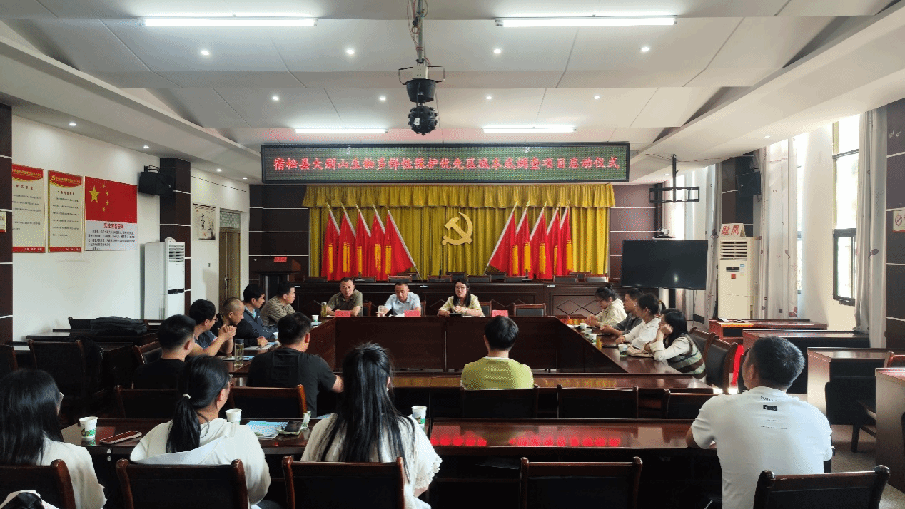 5月28日,大别山生物多样性保护优先区域生物多样性本底调查项目外业工作启动仪式在宿松县趾凤乡举行。安庆市宿松县生态环境分局、宿松县林业局、beat365亚洲体育官方网站生命科学学院专家及学生30余人参加启动仪式。