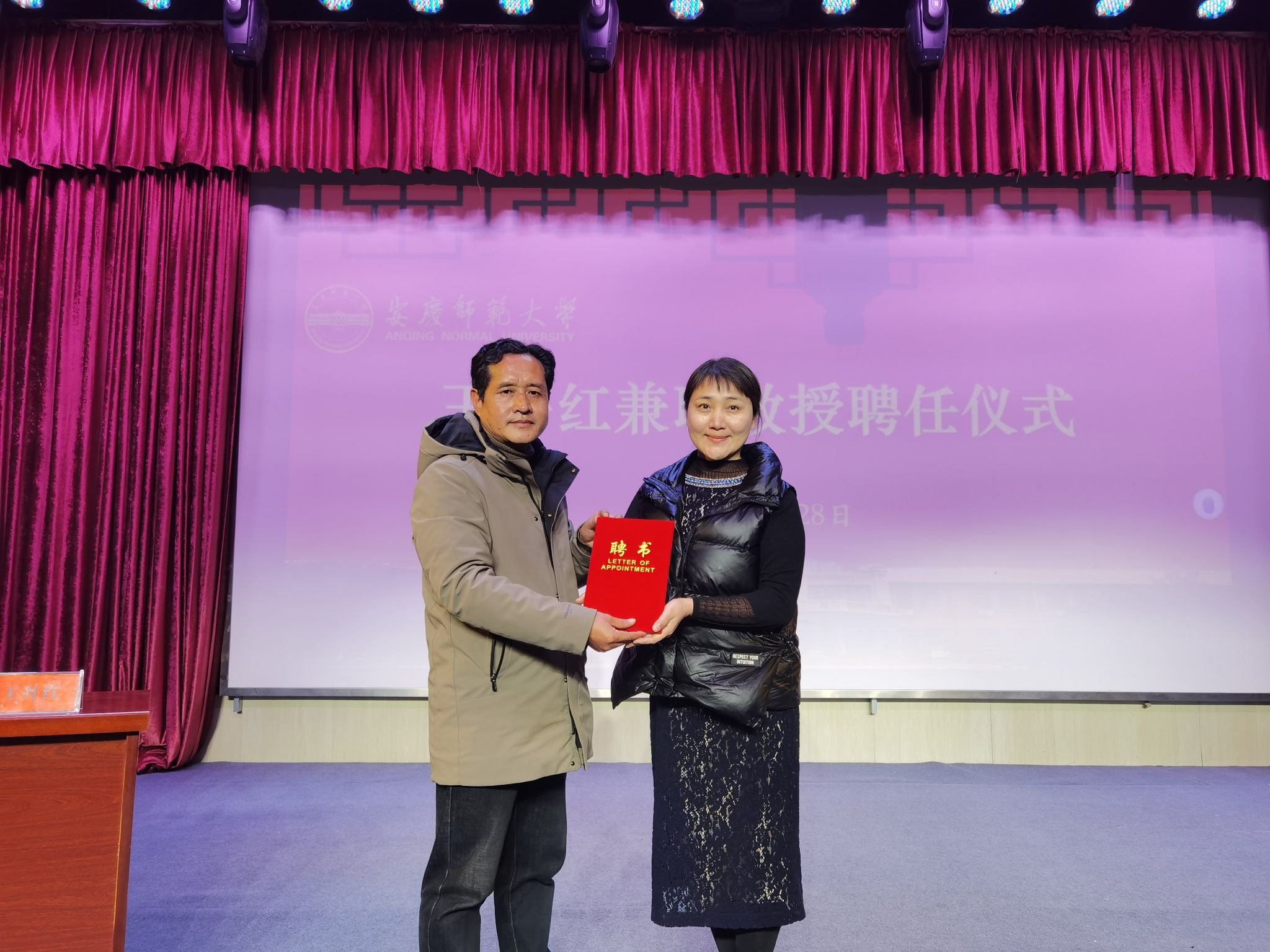 聘任仪式上,储著炎向王丹红颁发学校兼职教授聘书,对其加盟beat365戏曲教育事业表示热烈欢迎。王丹红教授表示,成为学校兼职教授,即是荣誉,也是责任,今后将为学校黄梅戏表演国家级一流本科专业、戏曲与曲艺学科博士点立项建设贡献力量。