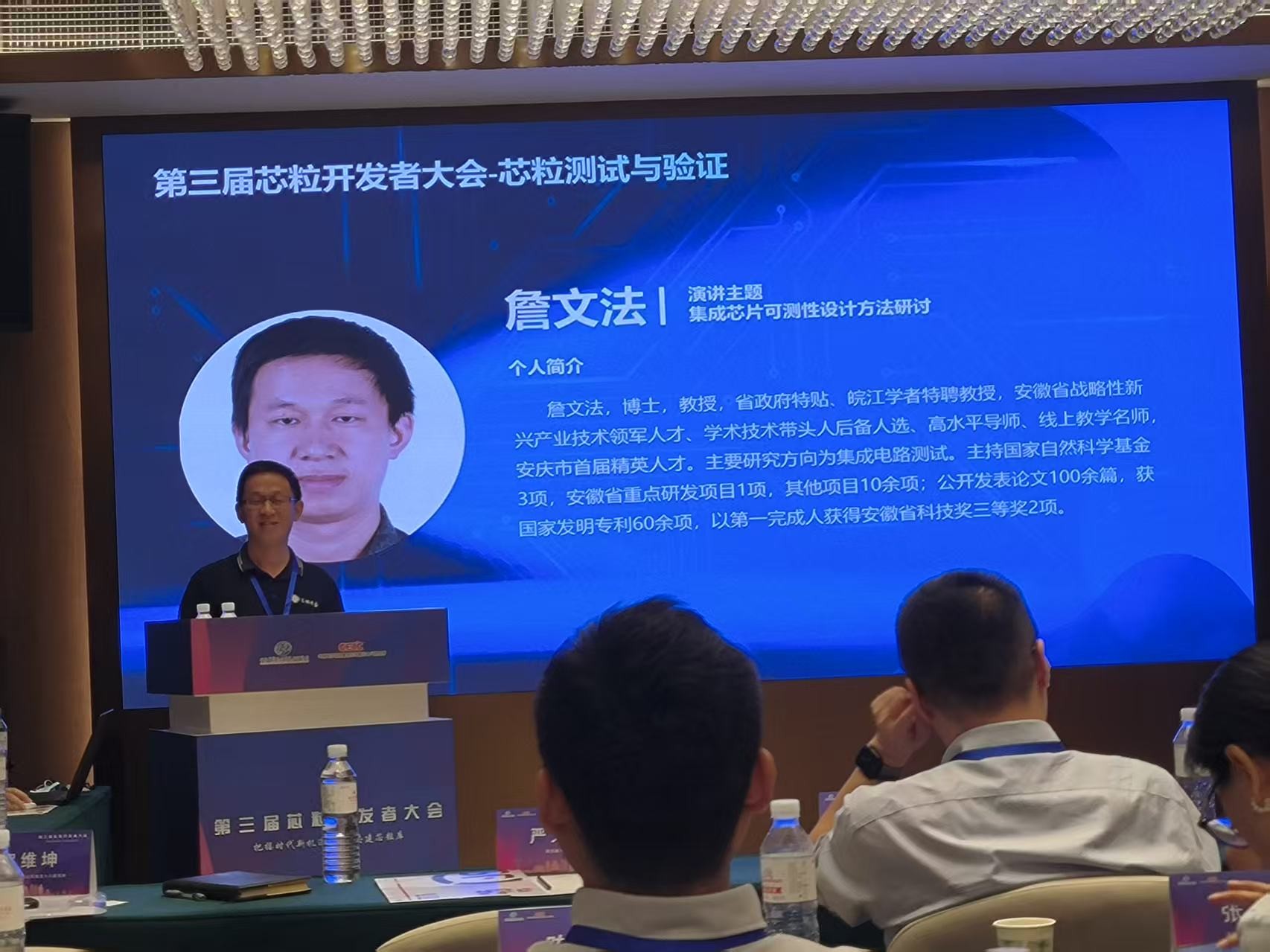 詹文法以《集成芯片可测性设计方法研讨》为题作报告,介绍了集成芯片无线测试:包括电容耦合大量集成芯片同时无线测试、分项无线测试方法和天线发射射频信号集成芯片无线测试;可实时调整扫描链数量和长度的并行测试框架的研发、测试向量全局重排序算法的设计、三维堆叠芯片扫码测试的安全验证等集成芯片可测性设计方法;并介绍了beat365亚洲体育官方网站人才培养情况。