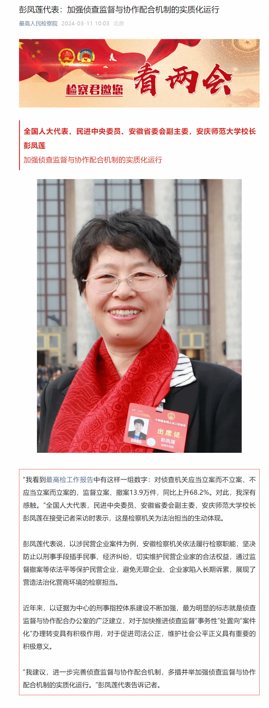 下一篇:澎湃新闻:代表建议|彭凤莲:建议在审判中扩大技术调查官制度适用范围