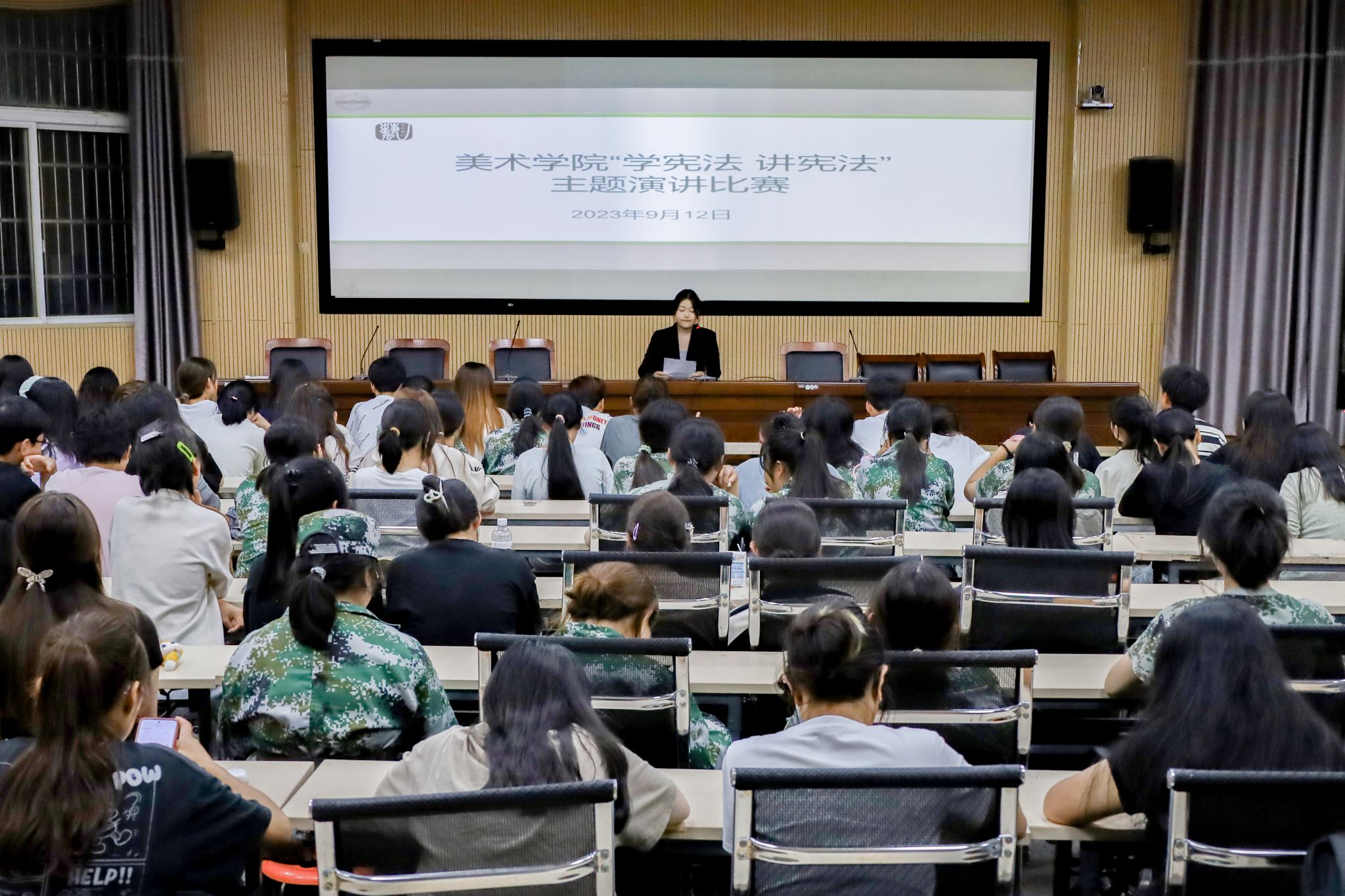 9月12日,美术学院在学院学术报告厅举办“学宪法 讲宪法”主题演讲比赛,22名来自学院不同专业班级的选手参与比赛,200余名学生到场观看。