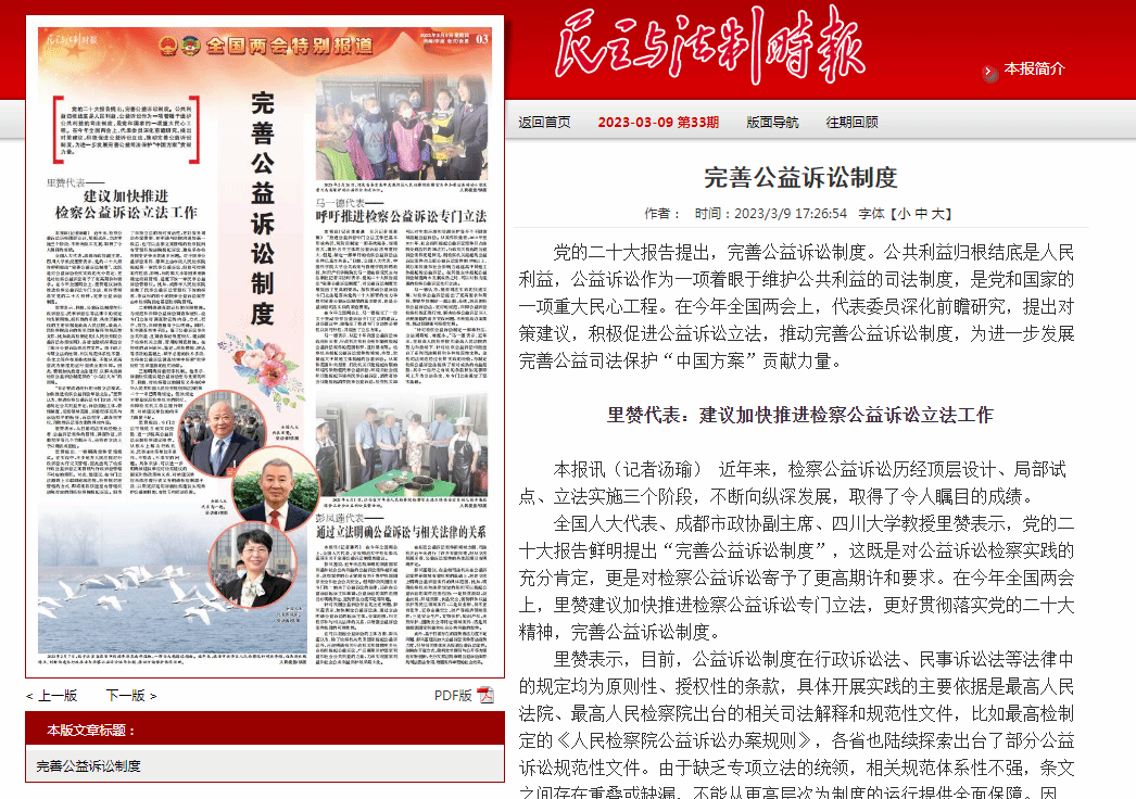 本报讯(记者潘巧) 在今年全国两会上,全国人大代表、beat365亚洲体育官方网站校长彭凤莲带来关于完善公益诉讼制度的建议。
