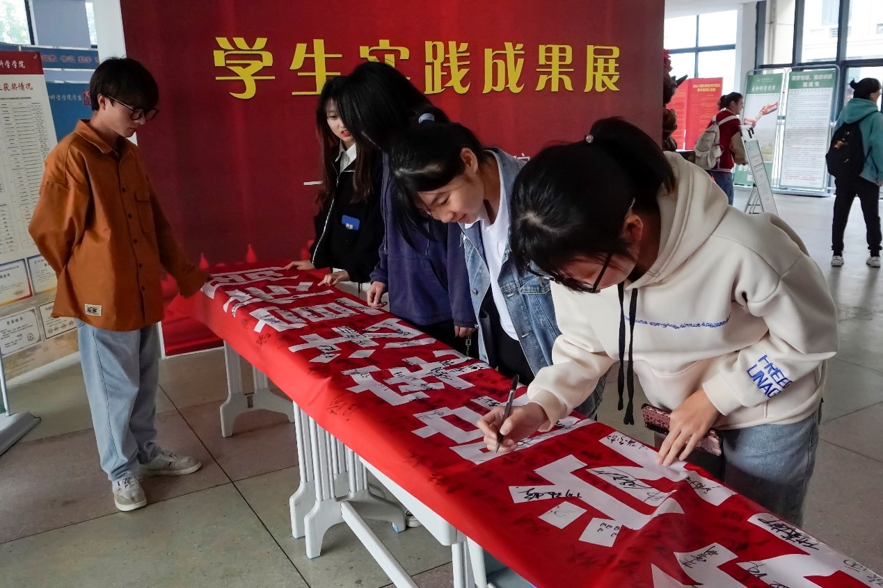“维护宪法权威”“遵纪守法,从我做起”“学法人人受益,守法处处和谐”……活动在学生们的宣誓声中拉开了序幕,他们在负责人们准备的红色横幅上签下自己的名字并进行宣誓。生物科学专业2021(4)班的杨子琼是其中的一员,她表示,签名宣誓活动增强了自己维护宪法权威的责任感,在横幅上签下的不仅是自己的名字,更是对宪法的尊重,也是表明一种学法守法的决心。“今后我也会继续努力学习各种宪法知识,做一个遵守宪法的好青年。”