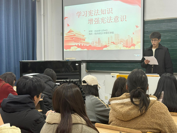 12月4日,第十一个国家宪法日期间,音乐学院以“学习宪法知识,增强宪法意识”为主题,在艺术楼B206教室开展宪法学习宣传活动。