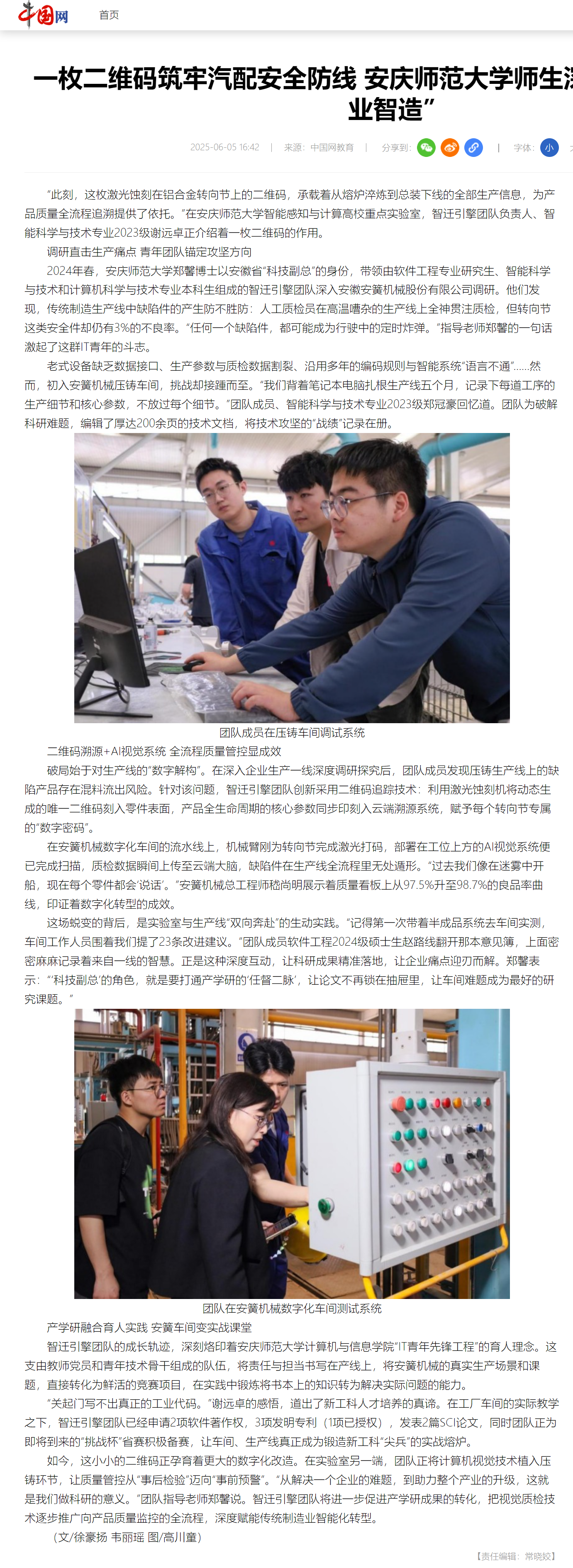 上一篇:安徽新闻网:一枚二维码筑牢汽配安全防线 安庆师大师生深入企业赋能“工业智造”