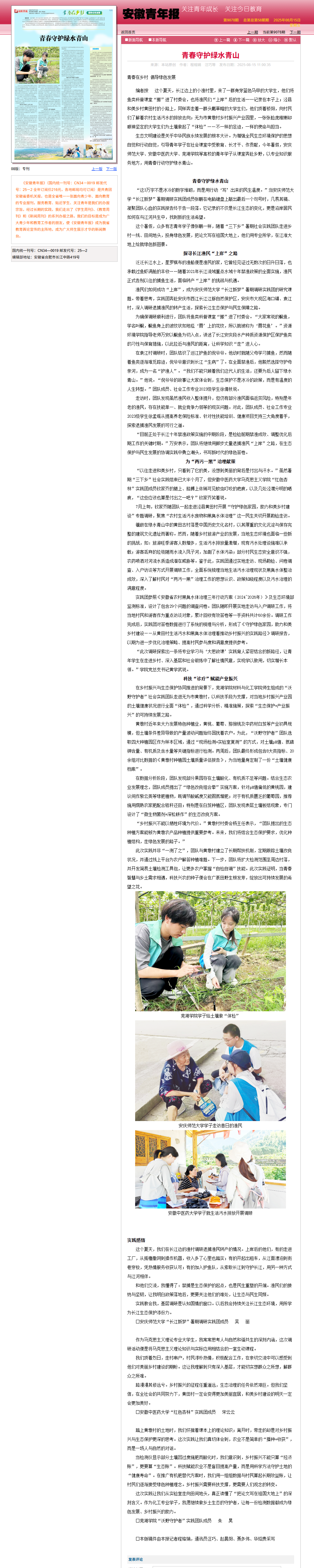 【安徽青年报】青春守护绿水青山http://epaper.ahyouth.com/paperdetails.php?CurrPeid=2497&CurrSid=24483&newsid=69627