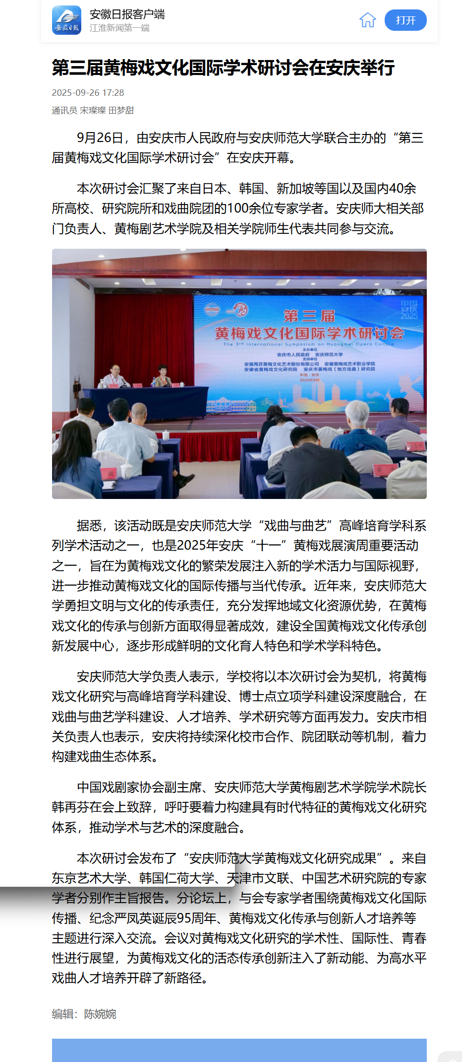 【安徽日报】第三届黄梅戏文化国际学术研讨会在安庆举行https://app.ahnews.com.cn/displayTemplate/news/newsDetail/253/1564381.html?isShare=true