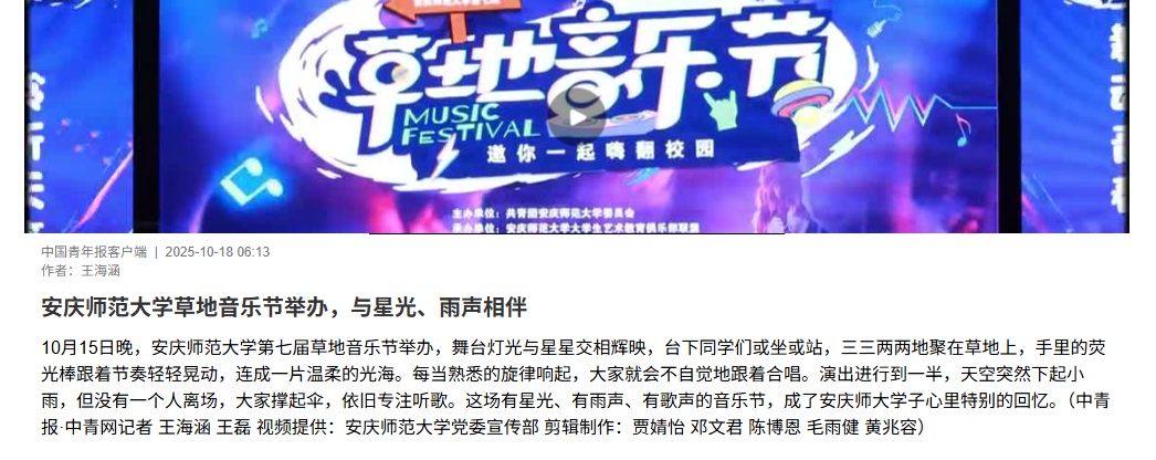 【中国青年报客户端】beat365亚洲体育官方网站草地音乐节举办,与星光、雨声相伴https://s.cyol.com/articles/2025-10/18/content_MbnO9YIn.html?gid=Zr5xz31e