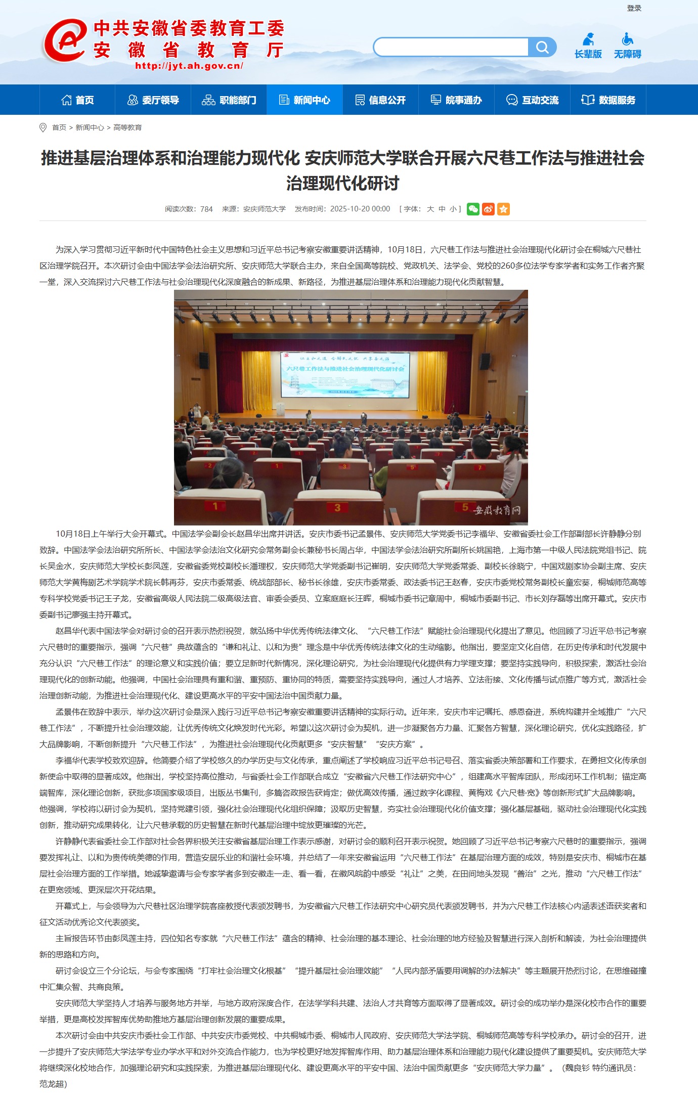 【安徽教育网】推进基层治理体系和治理能力现代化 beat365亚洲体育官方网站联合开展六尺巷工作法与推进社会治理现代化研讨https://jyt.ah.gov.cn/xwzx/gdjy/40769379.html