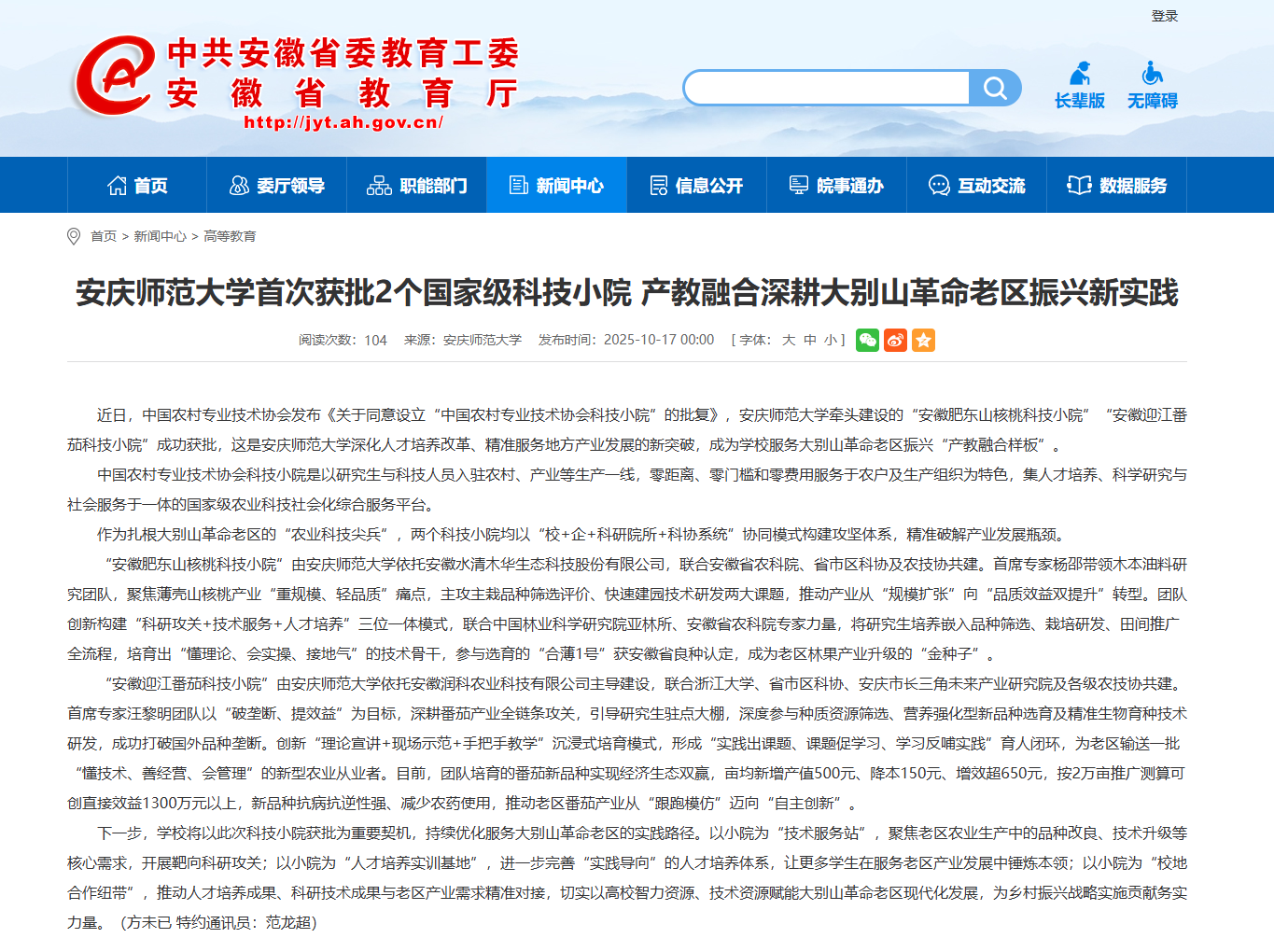 【安徽教育网】beat365亚洲体育官方网站首次获批2个国家级科技小院 产教融合深耕大别山革命老区振兴新实践https://jyt.ah.gov.cn/xwzx/gdjy/40769206.html
