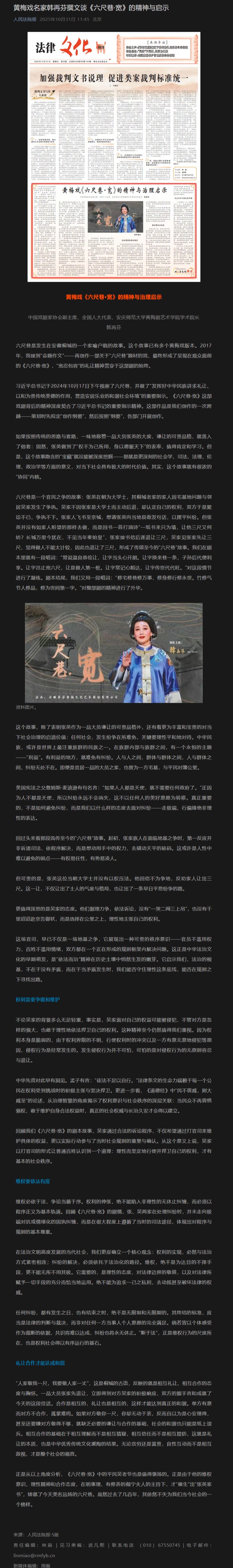 【人民法院报】黄梅戏名家韩再芬撰文谈《六尺巷·宽》的精神与启示https://mp.weixin.qq.com/s/vNHngMlq3AXG4ytrOhomMg?scene=1&click_id=2