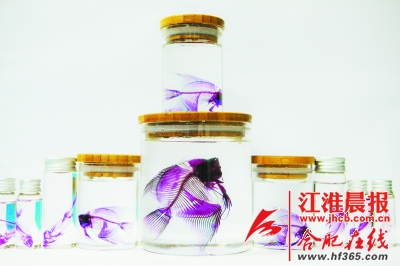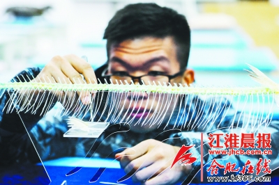 该作品的作者安徽科技学院的学生黄永彬告诉记者,这条鱼是他们亲自去福建捕捞的。最难的是保持鱼骨的翠绿色,反复试验多次之后,才使鱼骨的翠绿色得以最大程度地保存。