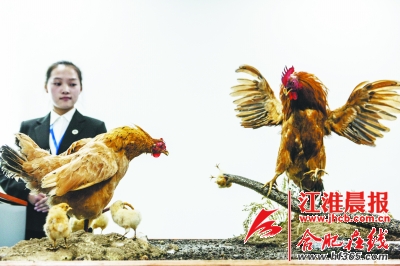 突如其来的一条黑蛇将一只雏鸡死死咬住时,一旁的公鸡振开双翅,冒死腾空抓住蛇的七寸,另一侧的母鸡则死死守护其他雏鸡。在创新创意组中,来自安徽农业大学的参赛作品让不少人惊叹,细致入微的动物眼神表达、制作精美的沙土和标本,都完美地再现了蛇鸡大战紧张的场景。