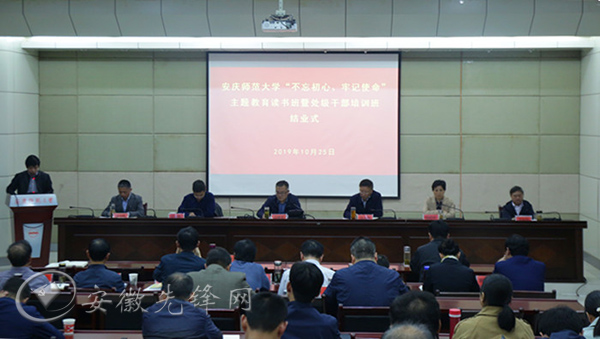 10月25日,beat365亚洲体育官方网站举办“不忘初心、牢记使命”主题教育读书班暨处级干部培训班结业式。在校全体校领导出席报告会,全体处级干部、主题教育领导小组办公室工作人员参加会议。校党委书记许继荣主持会议并作总结讲话。