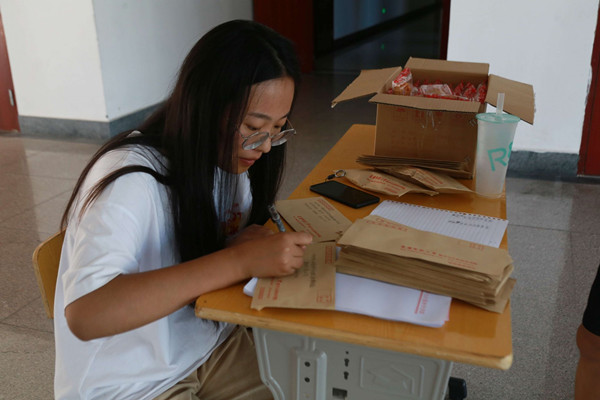 这次写家书活动一共安排了8名值班人员在9月13日至15日轮流进行摆点宣传,信件将于16日统一寄出。信息与计算科学专业2017(1)班的李云飞也是其中的一员,他表示:“有些学生比较腼腆,让他们面对面地和家人们说出自己的心里话可能有些困难,写信这种方式正好解决了这个问题。”