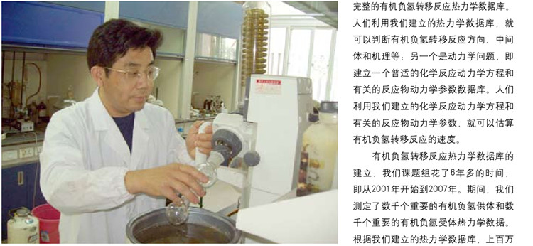 有机负氢转移反应热力学数据库的建立,我们课题组花了6年多的时间,即从2001年开始到2007年。期间,我们测定了数千个重要的有机负氢供体和数千个重要的有机负氢受体热力学数据。根据我们建立的热力学数据库,上百万个有机负氢转移反应热力学驱动力和机理等得到了可靠的预测。
