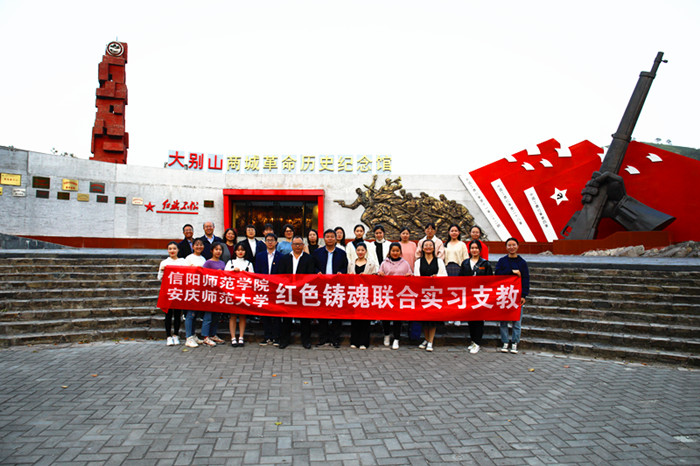 10月27日至29日,beat365亚洲体育官方网站教师教育学院组织该校教育硕士和本科生代表与信阳师范学院师生代表共计30余人,深入大别山革命老区的河南新县和商城县、安徽金寨县等地,开展“红色铸魂”教育见习综合实践活动,重温红色历史,铸就红色“师魂”。