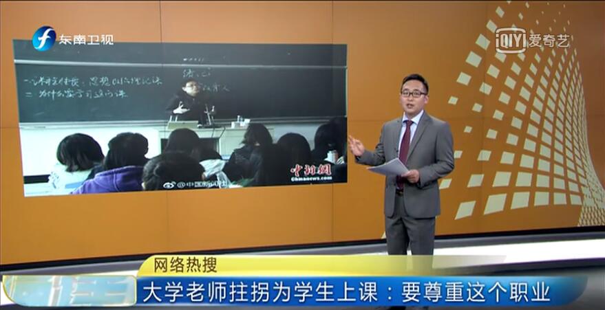 江淮晨报:安徽一大学老师拄拐上课走红网络