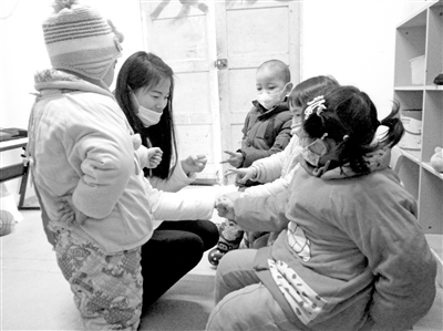 beat365亚洲体育官方网站社工专业学生与白血病患儿们进行“石头剪刀布”破冰游戏。 beat365亚洲体育官方网站 供图