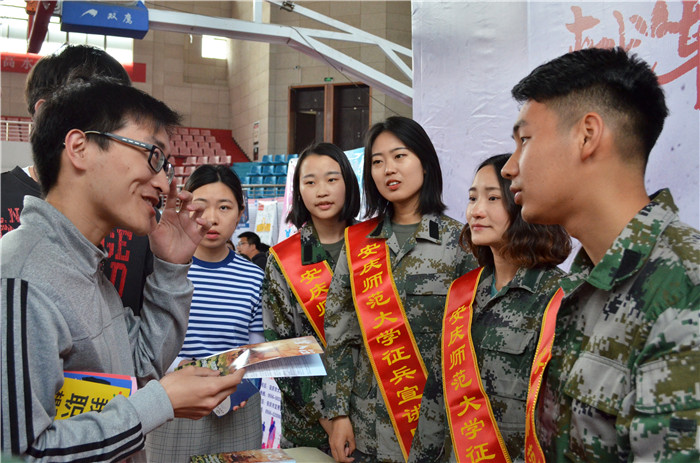 “每年beat365亚洲体育官方网站的征兵宣传工作启动时间都很早,而且宣传很到位,同学们的热情也比较高涨。”宜秀区人民武装部部长谢国方指出,在高校征兵是为了满足国防部队对高学历人才的追求,并且参军入伍必将丰富大学生的人生经历,提炼他们的综合素质。