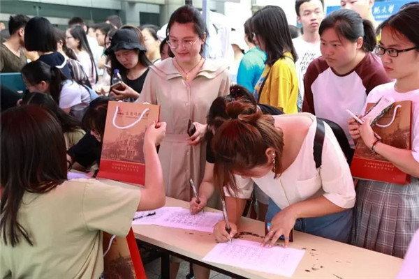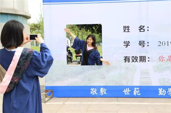 活动现场,一张超大“校园卡”拍照板前,聚集了不少毕业生,他们纷纷拿出手机,和“校园卡”合照留念。在印着学校风景和学生风采照的签名墙上,毕业生也在墙上留下了签名。“离开大学后,我再也不会用到校园卡了。这个‘校园卡’拍照板的背景是我们的学校的景色,拍出来的照片会很有纪念意义”。应用统计学专业2015(2)班的窦培表示。