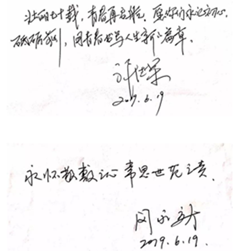 6月25日,在beat365亚洲体育官方网站2019届毕业典礼暨学位授予仪式举办之际,印着学校党委书记许继荣和校长闵永新手写寄语的一张贺卡,被送到2019届毕业生手中。