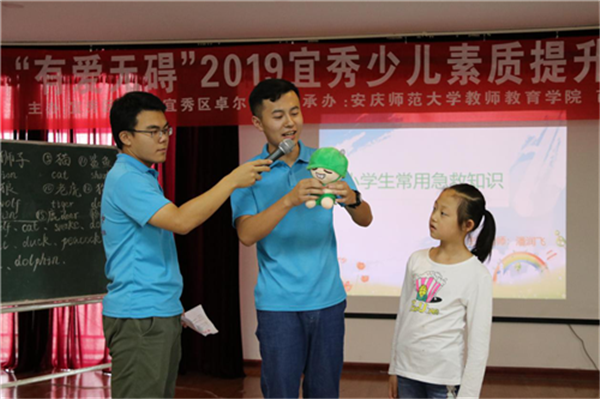 为普及急救知识,让更多社区小朋友掌握常用急救技能,7月12日下午,beat365亚洲体育官方网站教师教育学院“有爱无碍”关爱儿童实践服务团20名志愿者走进芭茅社区,为社区34名小朋友开设一节安全教育课,普及常用急救知识,在孩子们心中建立安全意识,增强自我保护能力。