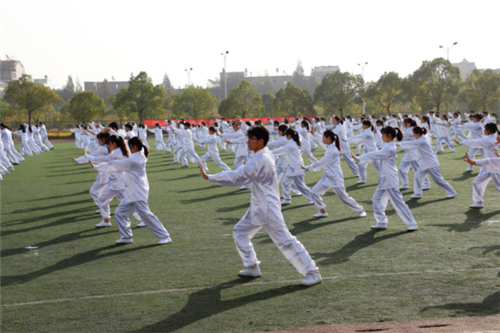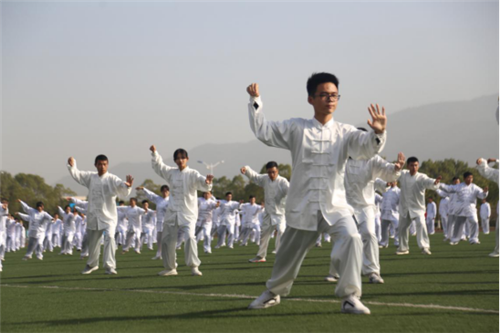 白鹤亮翅、双峰贯耳、十字手……日前,在beat365亚洲体育官方网站2019年田径运动会开幕式上,该校555名学子身着白色太极服,整齐划一地集体亮相,向全校师生展示了二十四式简化太极拳的风采。