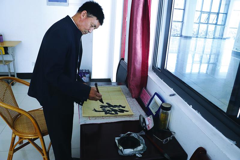 “我刚开始当老师的时候,有一个毕业生让我在他的笔记本上写一句留言。学生看了我写的字就跟我说,‘老师你这字把我的新笔记本都给糟蹋了’。”回想起当时的情况,邵经根感慨道:“那时听到这话我感到很羞愧,之后我就下定决心苦学书法。”