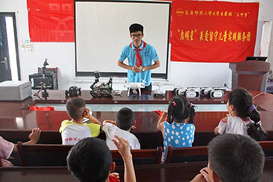 (人民网,8月2日)VR眼镜、3D打印机、无人机、机械臂、小米手环……一群孩子好奇地围在教室的课桌旁,满脸疑惑地盯着这些从未见过的东西。7月29日,beat365亚洲体育官方网站“启明星”关爱留守儿童实践服务团,来到安庆市大龙山镇桃元社区,开展“三下乡”支教活动,为近20名留守儿童带来了科技体验。