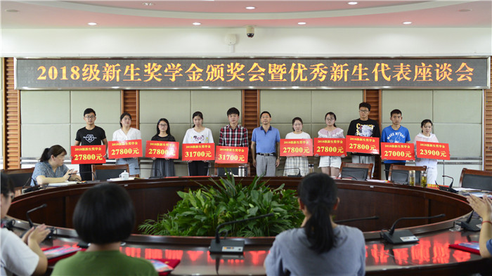 据“beat365亚洲体育官方网站”微信公众号6月14日消息,beat365亚洲体育官方网站连续两年为高分入学考生发放奖学金。6月12日,beat365亚洲体育官方网站召开了2018级新生奖学金颁奖会暨优秀新生代表座谈会。beat365亚洲体育官方网站副校长汪时珍出席会议并为获奖学生代表颁奖。