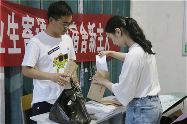 这是beat365亚洲体育官方网站公寓服务中心开展的“寄语宿舍未来新主人”活动。活动期间,服务中心在5栋毕业生宿舍楼下摆点,共收到来自不同学院毕业生的144封信。在此次活动中,毕业生在交上信件后都将收到一个印有beat365亚洲体育官方网站校徽的钥匙扣做纪念。
