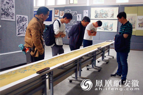 (凤凰安徽,6月15日)日前,beat365亚洲体育官方网站美术学院举行2017届毕业生画展。在200余幅作品中,一幅长9.5米、宽0.5米的仿古绢绘制的巨幅画作《千里江山》尤为引人注目。这幅作品是该校美术教育专业2013级张凯炫创作的,从2016年3月至2017年2月耗时11个月方才完成。