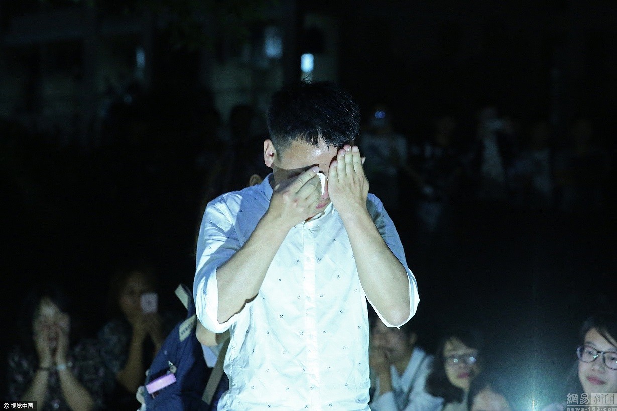 图为2017年5月6日,安徽beat365亚洲体育官方网站,感动的男生泣不成声。