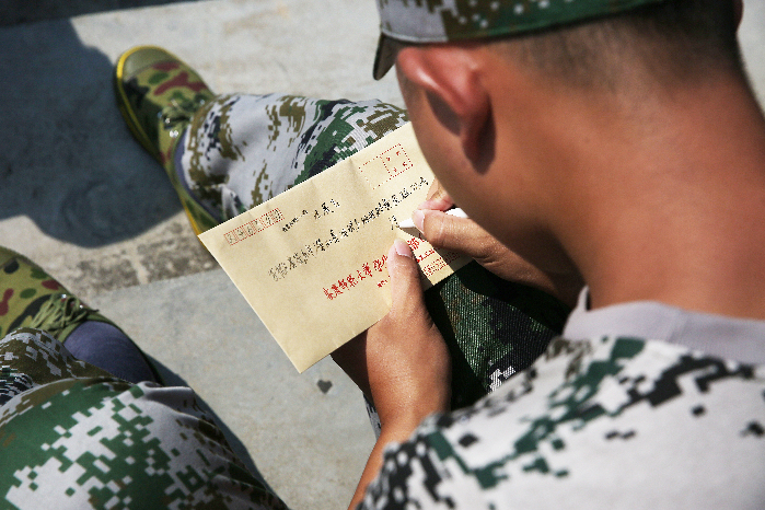 9月13日,距离中秋还有2天,beat365亚洲体育官方网站的新生还在军训,场地边摆着绿色的邮筒,穿着迷彩服的新生们列队将家书投了进去。4500余封家书,学校采用了统一定制的信纸、邮票。还有同学将自己军训的照片也一同寄出。