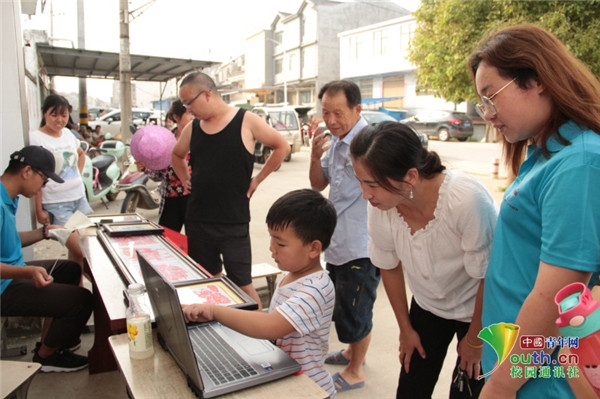 图为实践团成员们在进行挑花路演,向路人介绍、展示望江挑花。 中国青年网通讯员 牛玉洁 摄