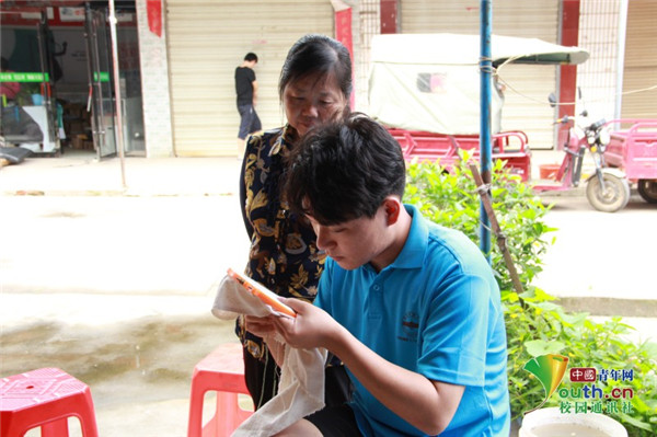 图为实践团成员采访当地居民,了解有关望江挑花的信息。 中国青年网通讯员 牛玉洁 摄