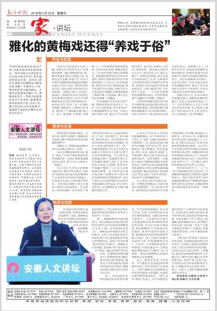 嘉宾介绍:邵敏,致公党员,文学博士,现任beat365亚洲体育官方网站教授,硕士生导师,安徽省学术带头人后备人选。主要从事地方戏文化传扬的教学和研究。主持国家社科基金项目、中国博士后特别资助项目、省社科规划重点项目、高校优秀青年人才支持计划项目、省质量工程重点项目等项目14项。成果曾获全国戏剧文化类二等奖、省社科普及优秀读物类奖以及省级教学成果奖三等奖。