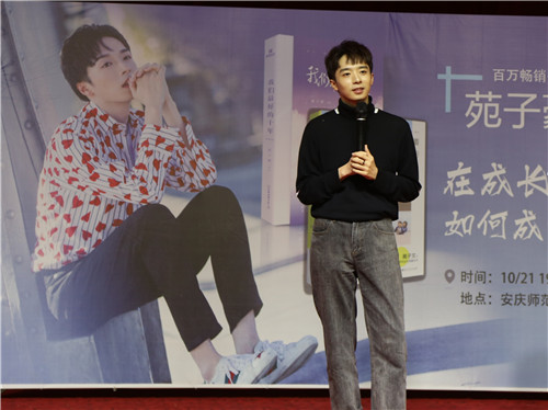 “我喜欢看别人的故事,从他们身上找到一些启发,然后激励自己。”苑子豪向学生们介绍自己2018年出版的新书《我们最好的十年》,“和大多数人一样,在成长的路上我也遇到很多困难,写作记录成了我的精神陪伴。”他坦诚,在读硕期间遇到过一段迷茫期,但庆幸最后坚持了下来,找到了自己的方向,并希望读者可以从他的书中获得一些生活上的启发。