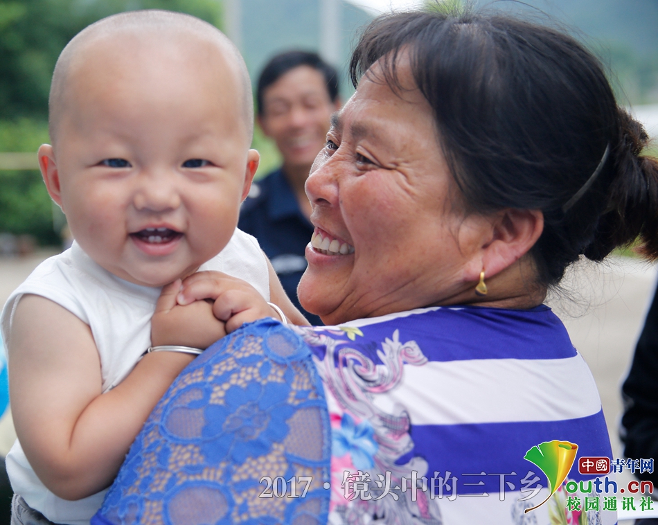 在走访居民户过程中,一户家庭的小孩子在奶奶的怀抱中笑开了花,身后的爷爷看到党员同学正在拍照也露出了笑脸。中国青年网通讯员 葛德智 摄