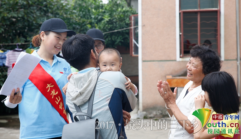 大学生党员前往社区居民中开展“五美家庭”评选活动,党员同学抱起孩子的这一刻简单温馨。中国青年网通讯员 程汗 摄