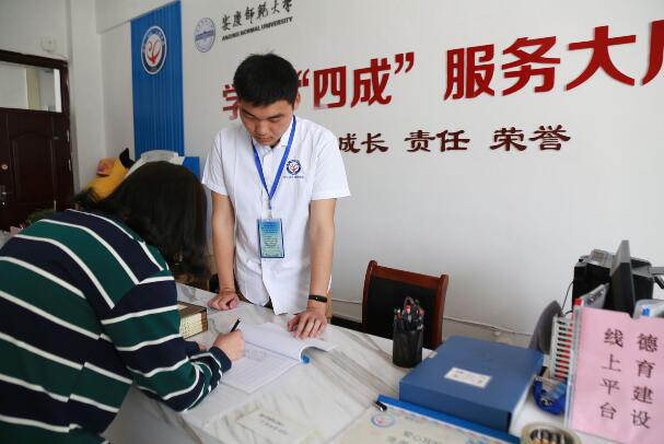 安徽网 大皖客户端讯 资助服务、心理咨询、等级考试准考证打印、就业咨询、失物招领……在过去的12年间,作为安徽省首家“一站式”学生事务服务组织——beat365亚洲体育官方网站学生“四成”服务大厅在近千名志愿者的爱心接力下,累计服务学生逾144000人次,受理业务80000余件,是安庆师大学生最贴心的服务驿站。